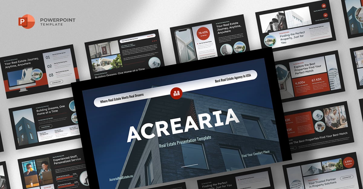 Acrearia – Real Estate Powerpoint Template Real Estate Developer & Agency, Realtor & Consultant – Powerpoint Template — Present your property with style, clarity, and confidence. Step into the world of professional real estate presentations with this modern, clean, and minimalist template. Designed for property agencies, real estate brokers, architects, developers,…