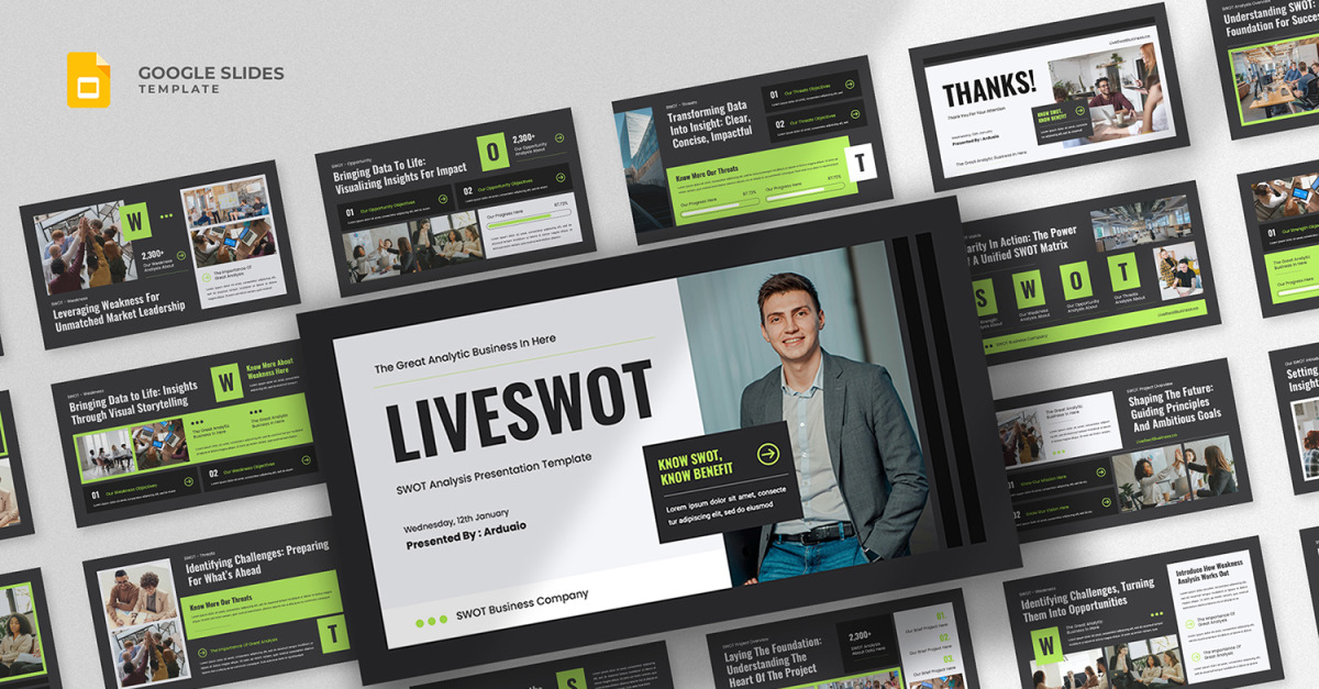 Liveswot – SWOT Analysis Google Slides Template SWOT Analysis, Business Plan, Proposal & Pitch Deck, Consulting – Google Slides Template — Simple, clean, minimalist, modern, and professional presentation template. It is a multipurpose business presentation template. Perfect for SWOT analysis presentation, business plan & strategy, corporate management & marketing consulting, project proposal,…