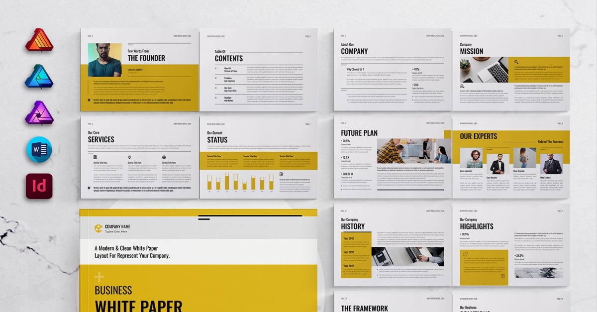 Business White Paper Template Design Landscape for MS Word, InDesign and Affinity Suites