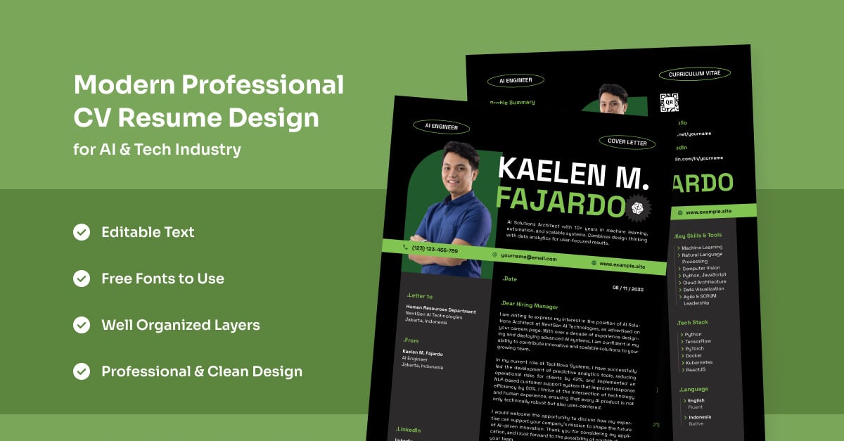Elevate your career in tech with this clean and professional CV. Designed for clarity and easy navigation, it helps software developers, analysts, and UI/UX designers make a strong first impression. **Highlights:** – A4 format paper size – Free Fonts used – Full Editable files (text, color, & objects are editable) – Compatible with Adobe Illustrator,…